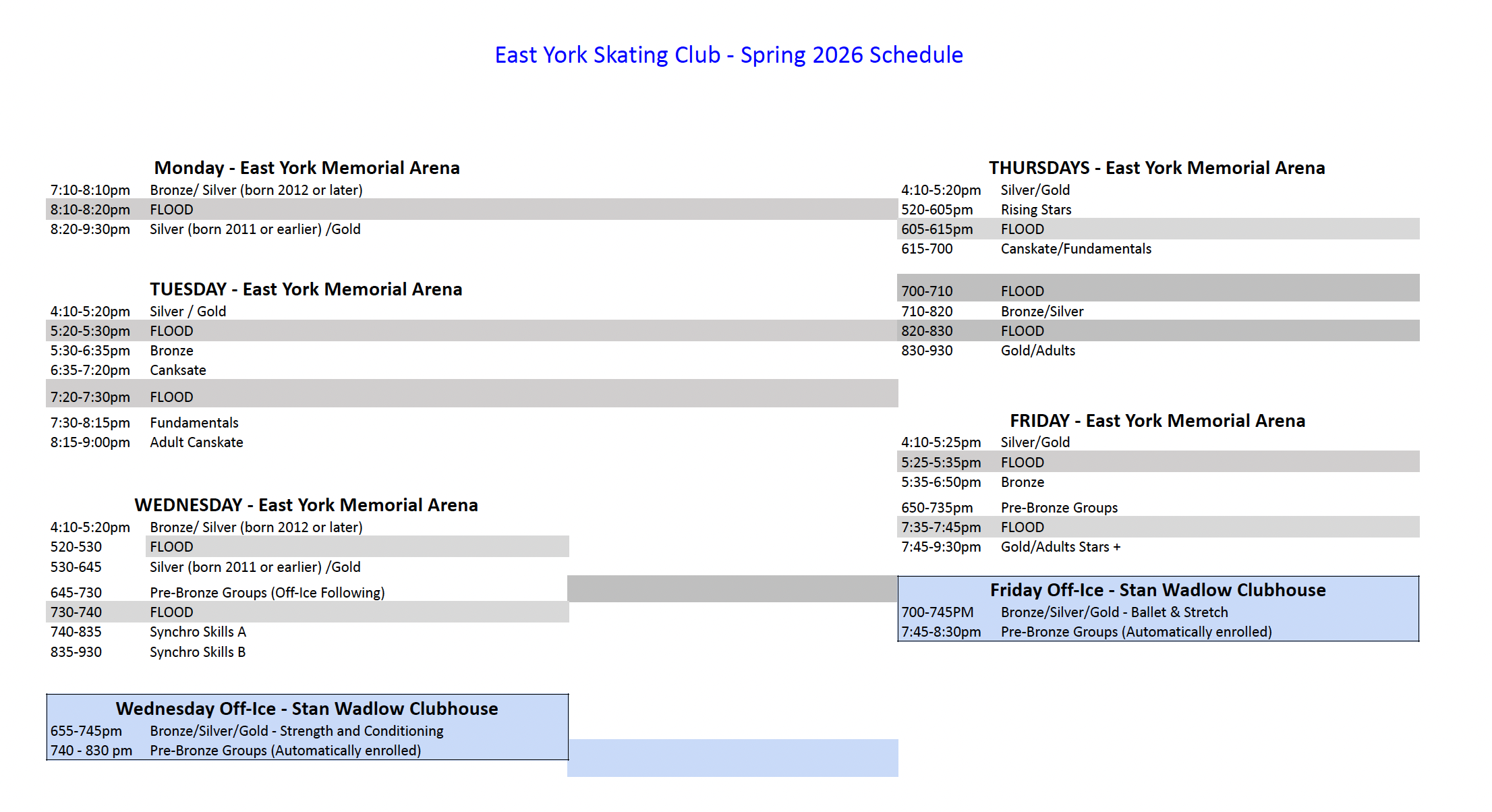 Off Ice Included in Session Fees